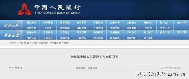 再往前,1月5日至6日,2026年中国人民银行工作会议召开,部署全年七大重点工作,围绕货币政策实施、金融服务实体经济、风险防控、金融改革开放等核心领域。