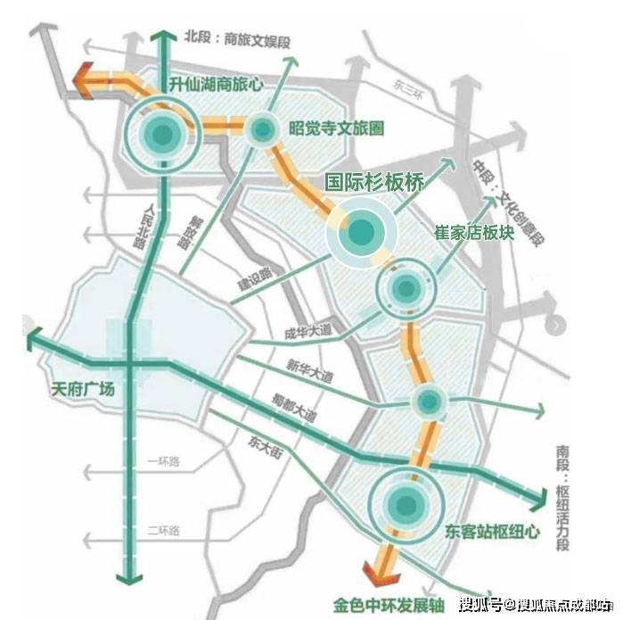 板块定位:二八板块(二仙桥-八里庄)是成华区“金色中环”战略核心,定位为“国际杉”文创艺术区,东郊记忆、滨江天街构成城市封面。